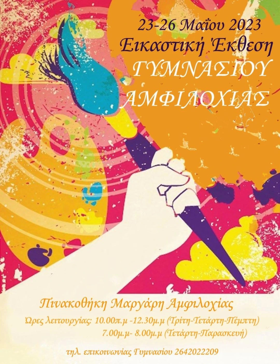 Με μεγάλη χαρά οι μαθητές του Γυμνασίου Αμφιλοχίας σας προσκαλούν στην έκθεση που θα πραγματοποιηθεί στην Πινακοθήκη Μαργάρη να δείτε τα έργα που ετοίμασαν με τη βοήθεια της καθηγήτριας εικαστικών κας Νταρλαγιάννη Αναστασίας.